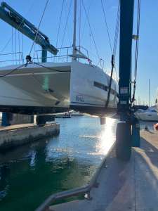 Jetzt ist unser Katamaran „Helena“ mit dem Winterservice an der Reihe. Frisch poliert und durchgecheckt steht sie für die Charter-Saison 2022 bereit.